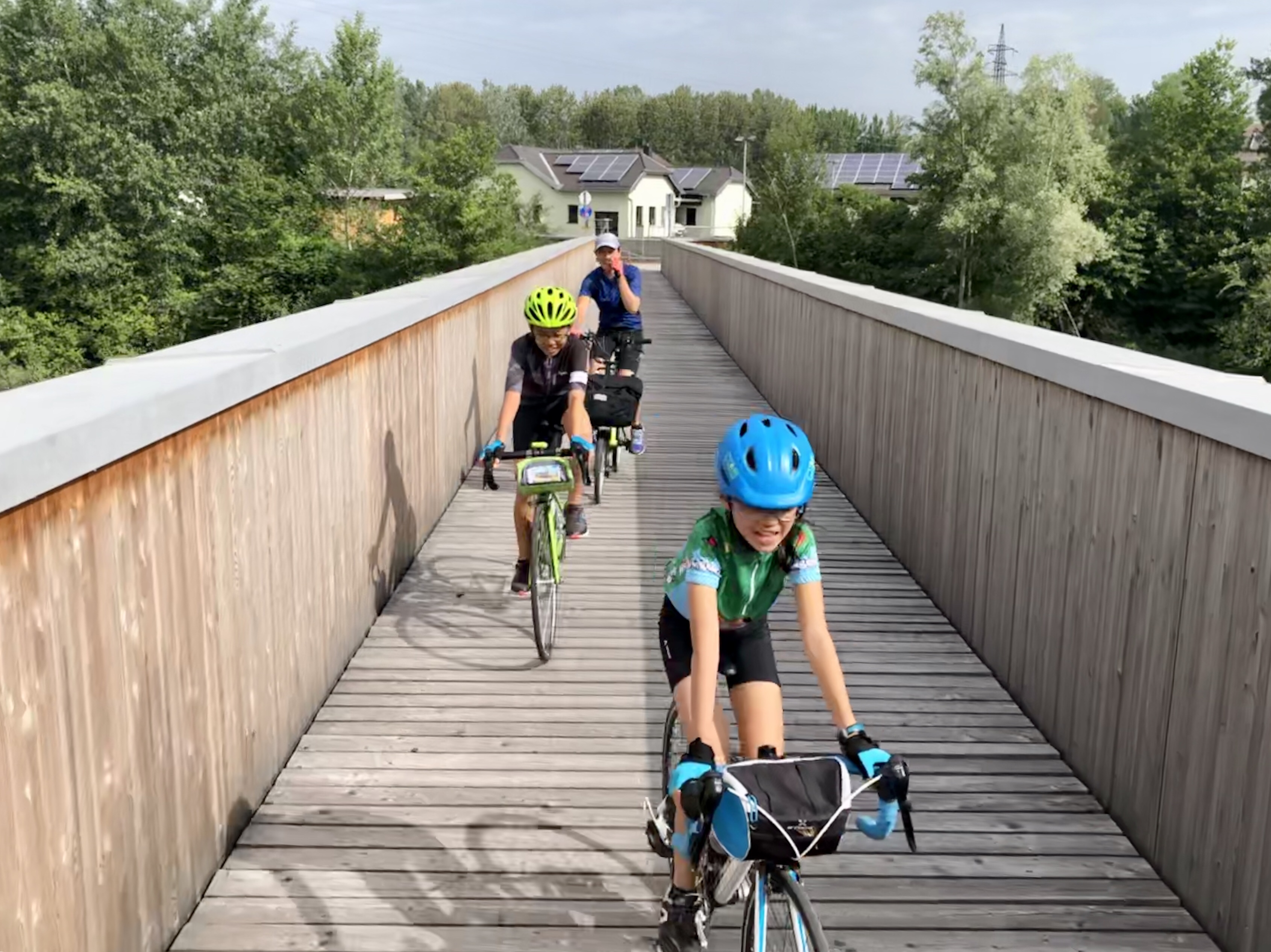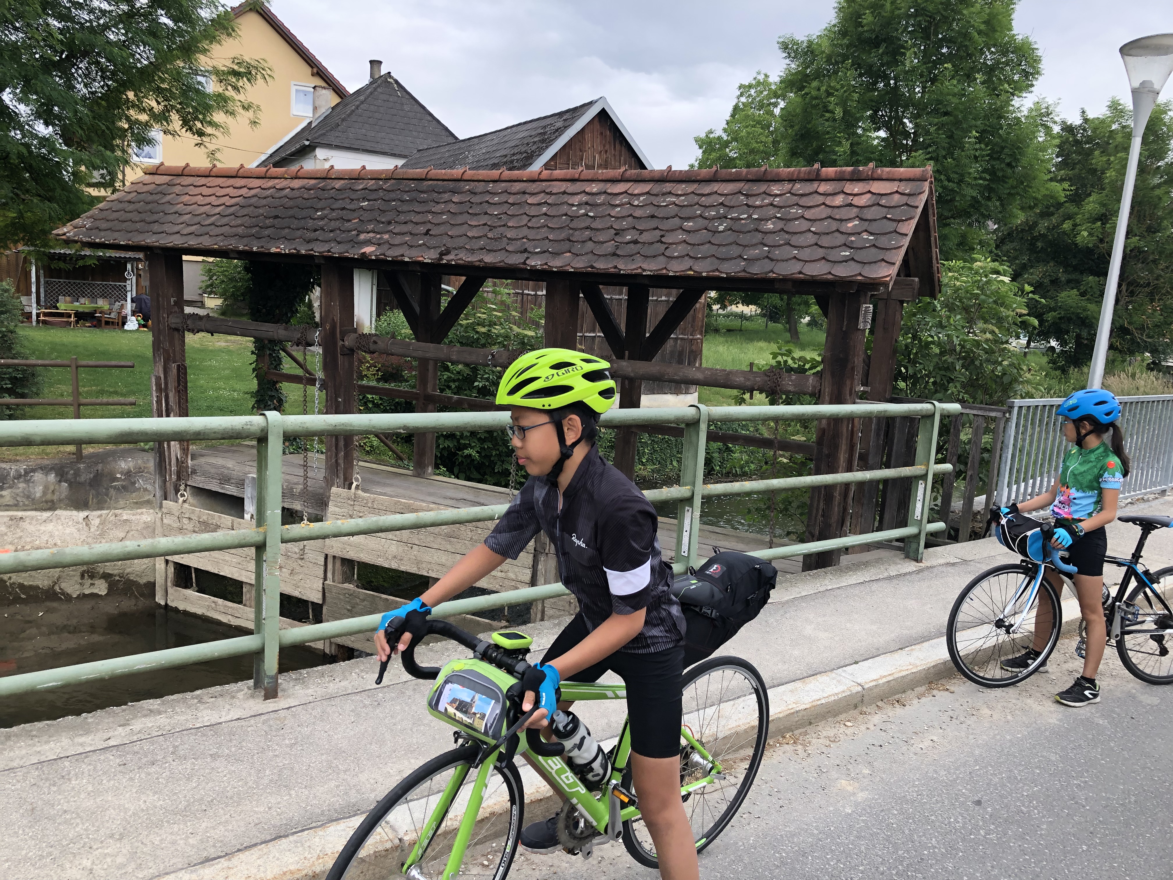 A steep gravel incline to another bridge meant pushing our bikes.