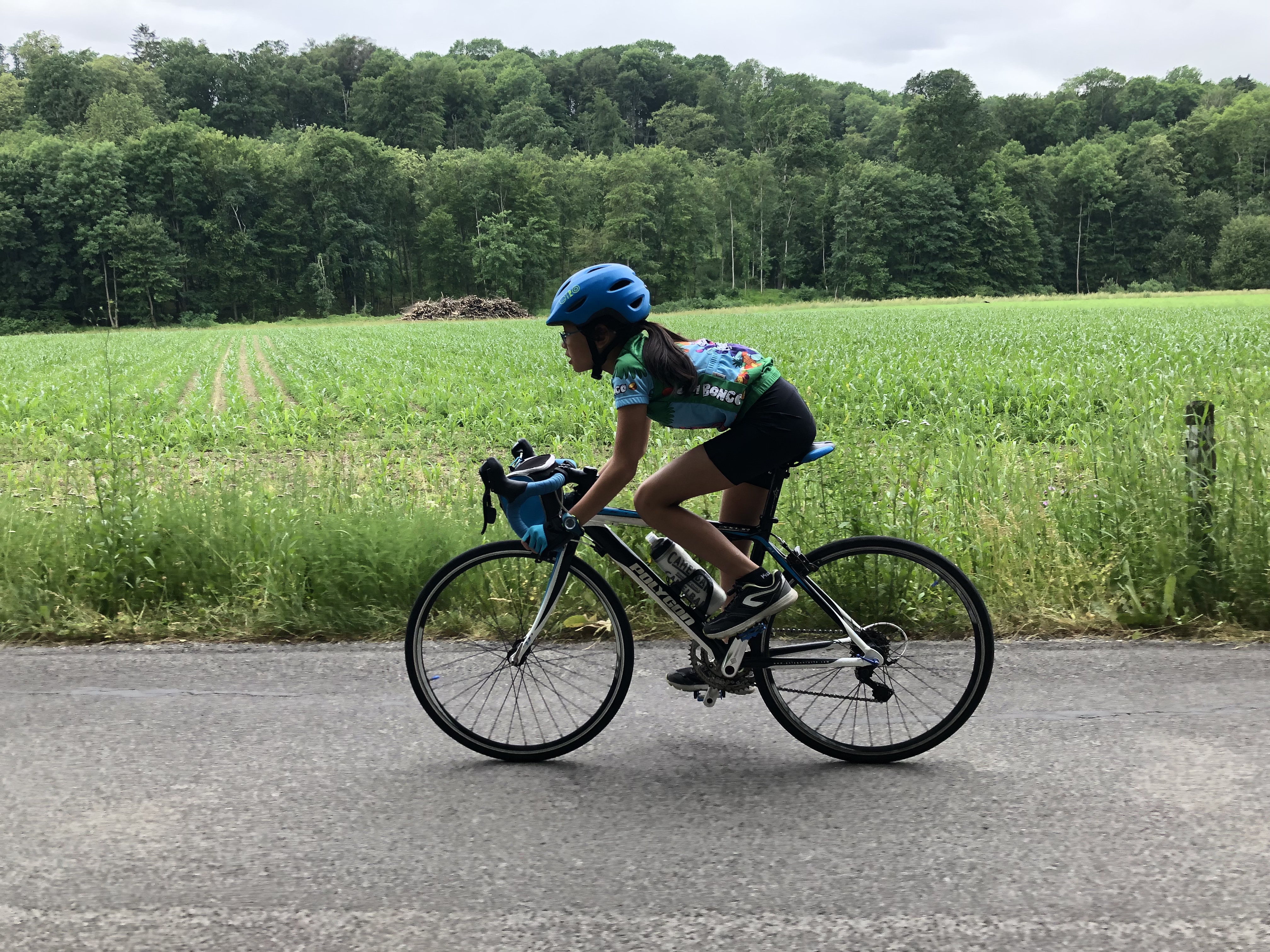 On the drops Talia! Here you can see Talia’s great posture and her superior flexibility. With her core strength she will be able to hold an aero position very comfortably in coming years.