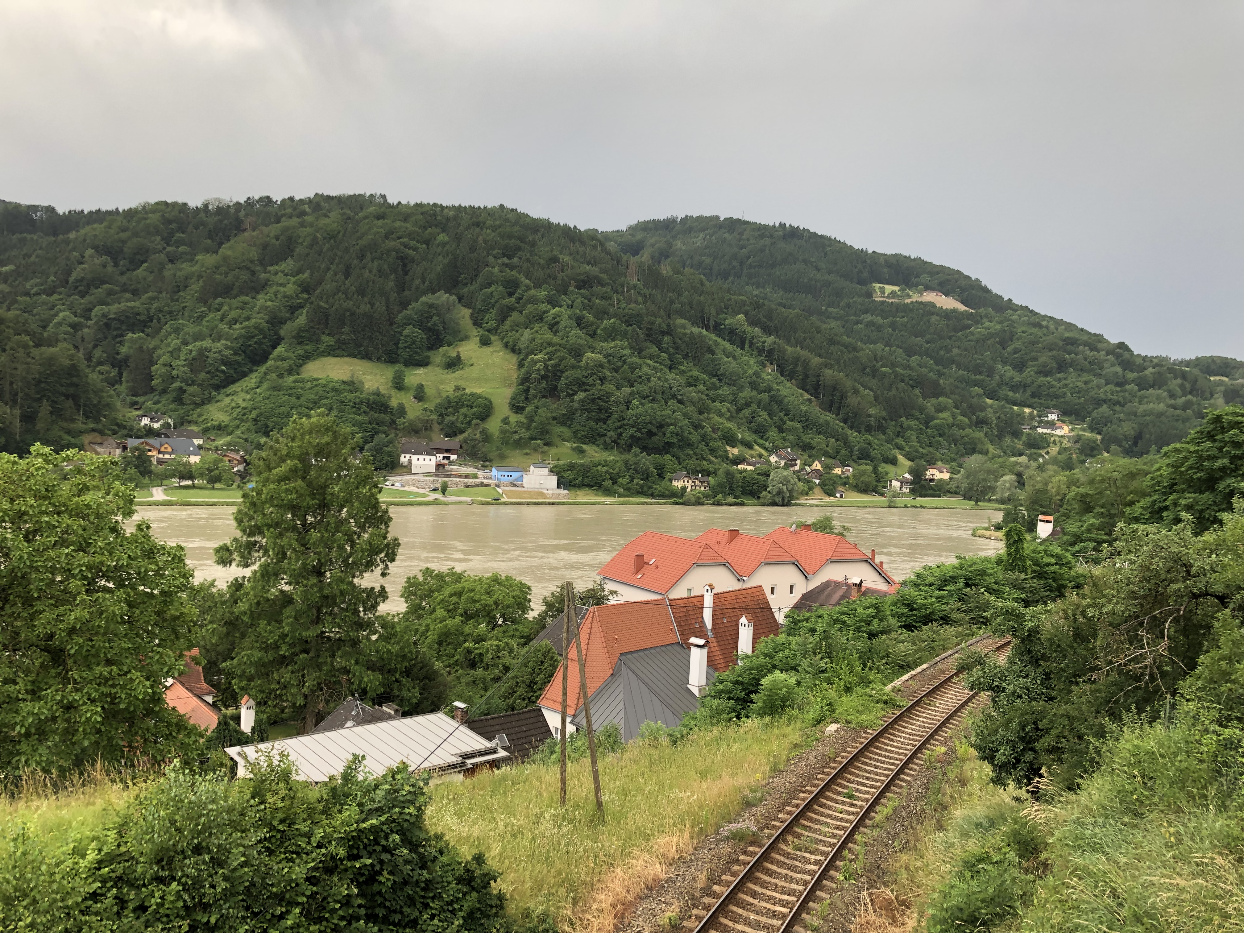 It was located on the hillside overlooking the Danube. We crossed a rail track.