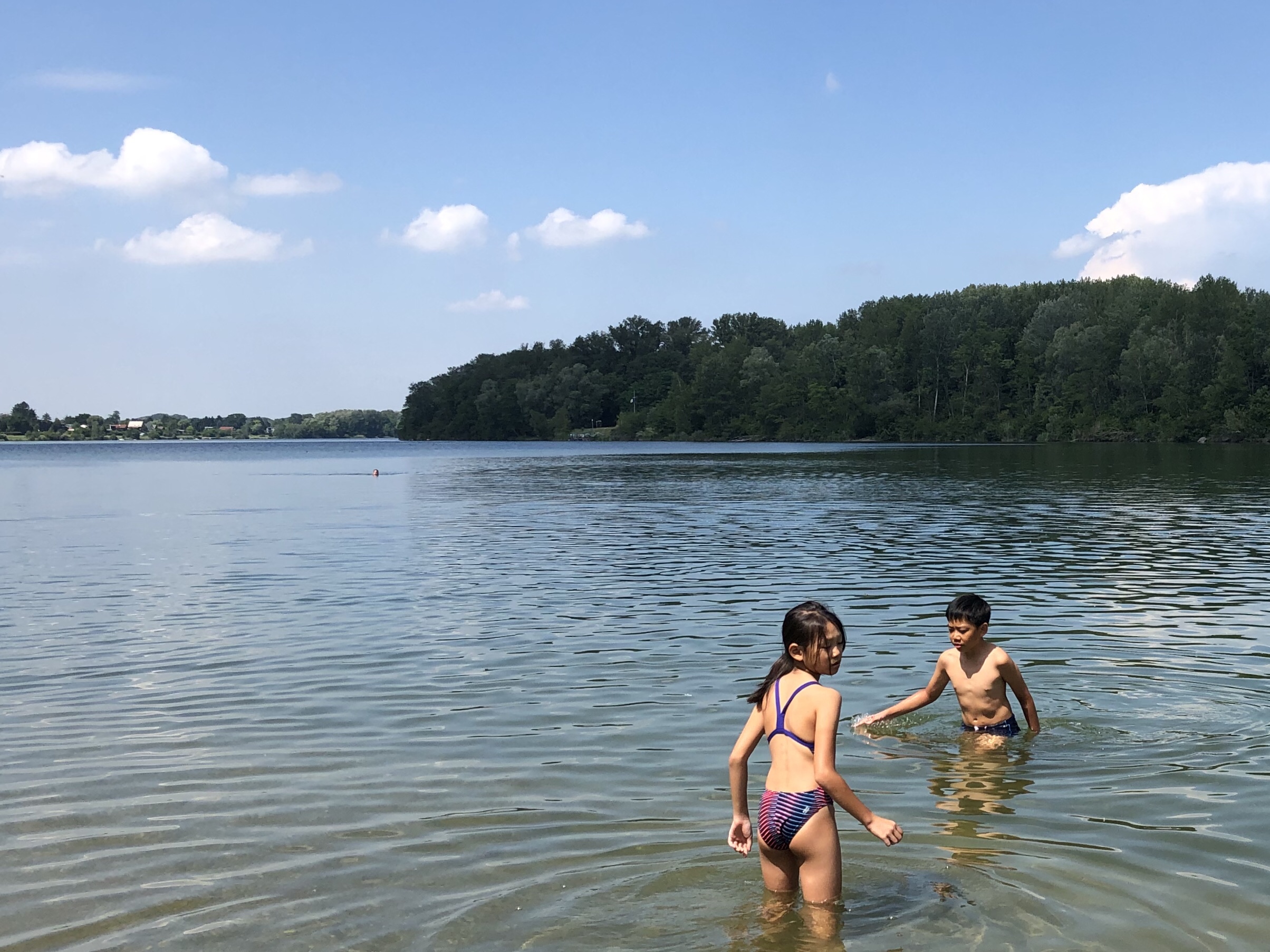 We are so glad we did! The water was crisp and clear, in a quiet offshoot of the Danube. Fish were swimming around Talia’s legs and ducks were paddling nearby. Talia was thrilled to swim with ducks! We had to tear them away afterwards!