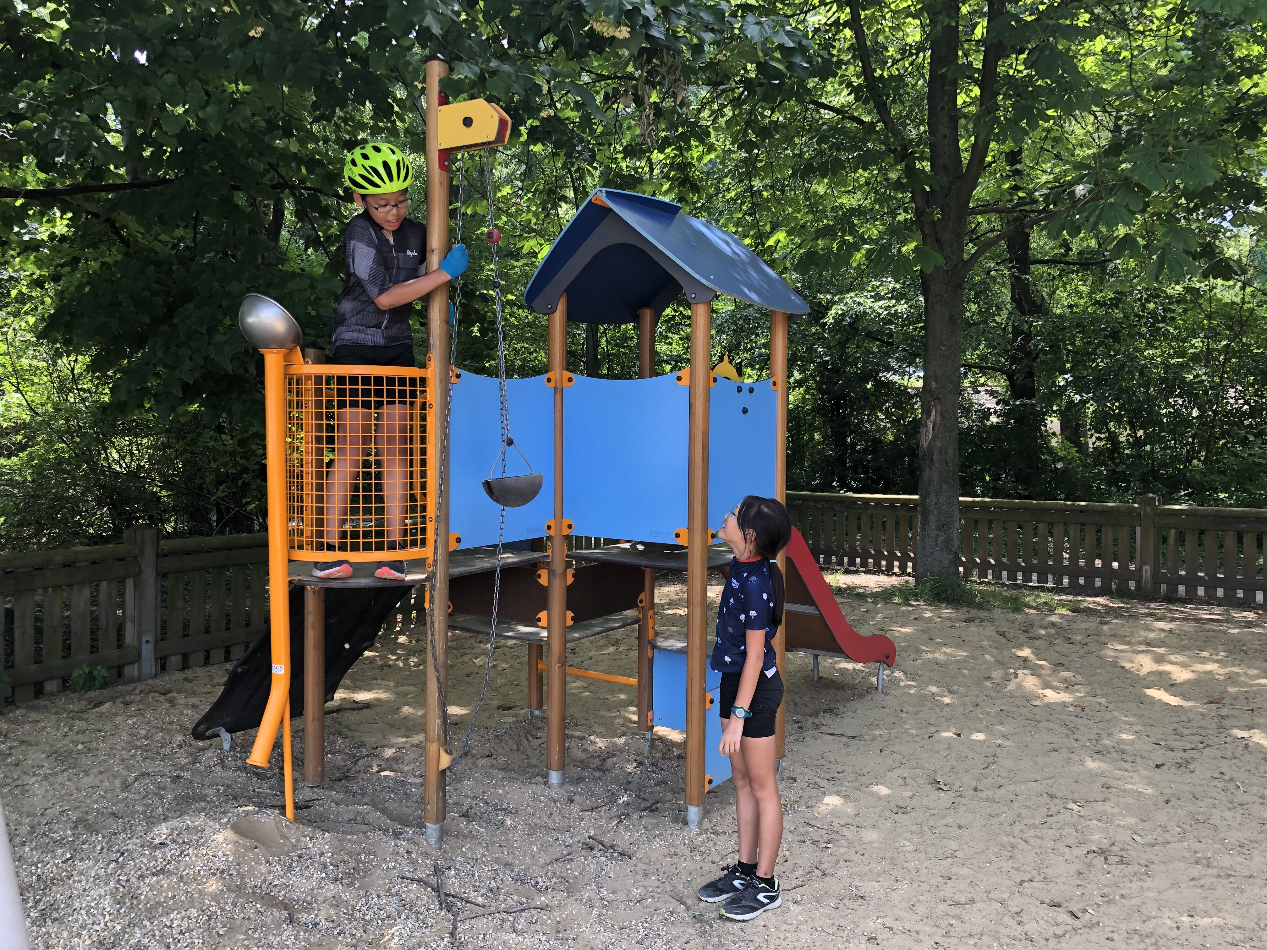 Another short break at cute playground livens up the kids. This one had a pulley bowl which allowed you to pull a bucketloads of sand up then our it down a chute. Ethan and Talia loved it!