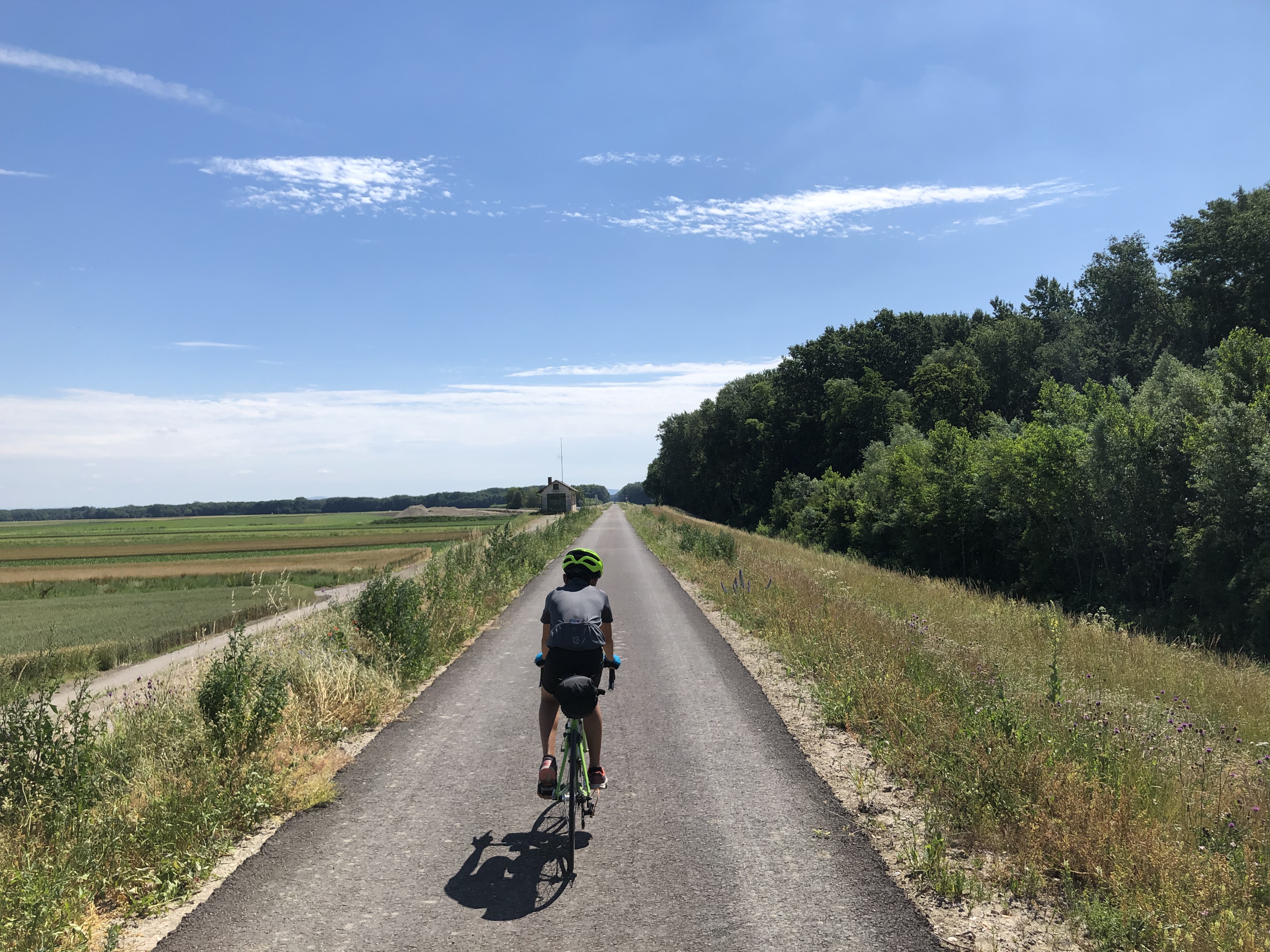 It’s still fun to see the EuroVelo 6 signpost! We were just 8.5km from the city and very the Austria-Slovakia border!