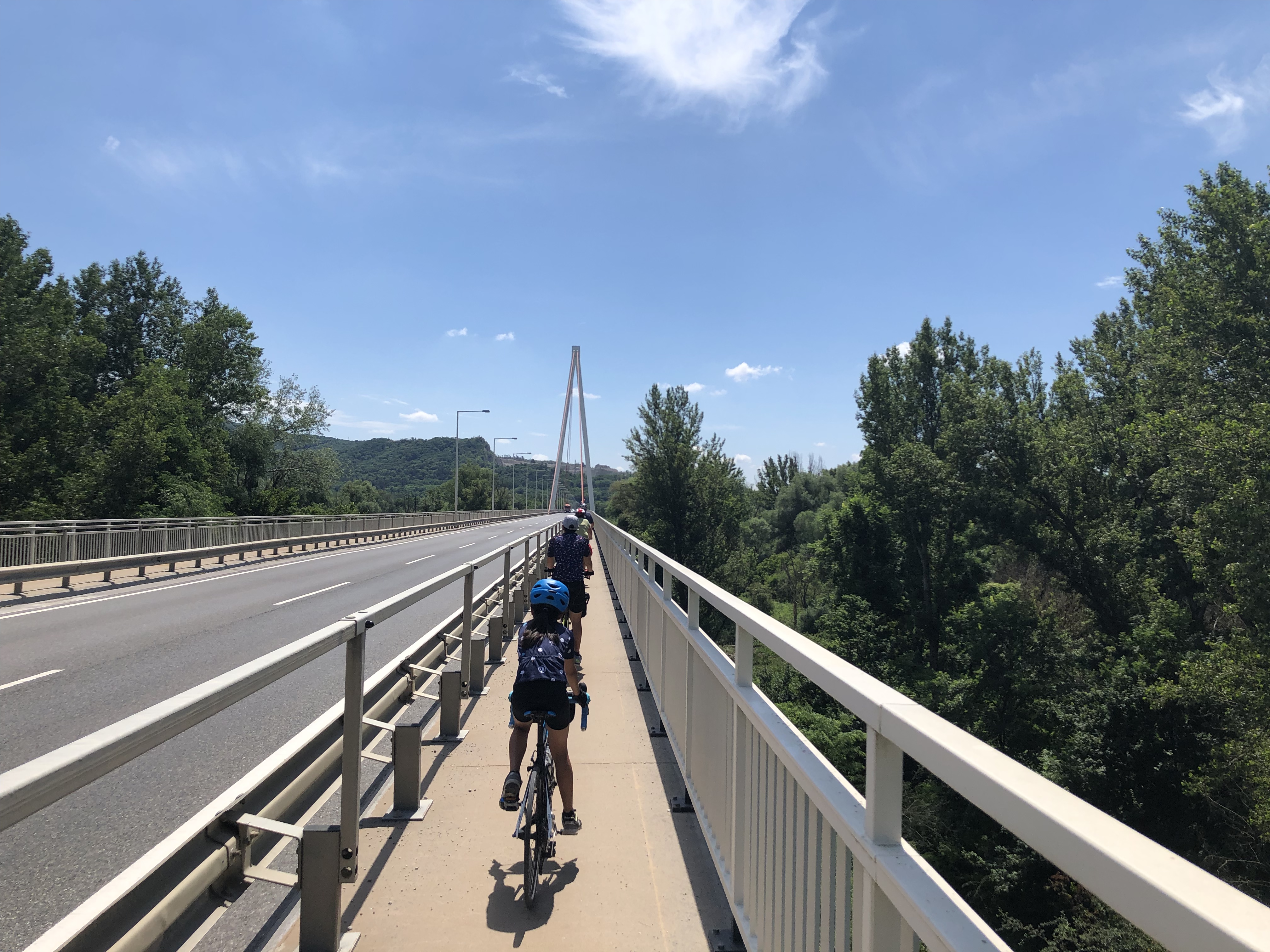 We left the city crossing a huge and long bridge. The cycle lane went under the cars.