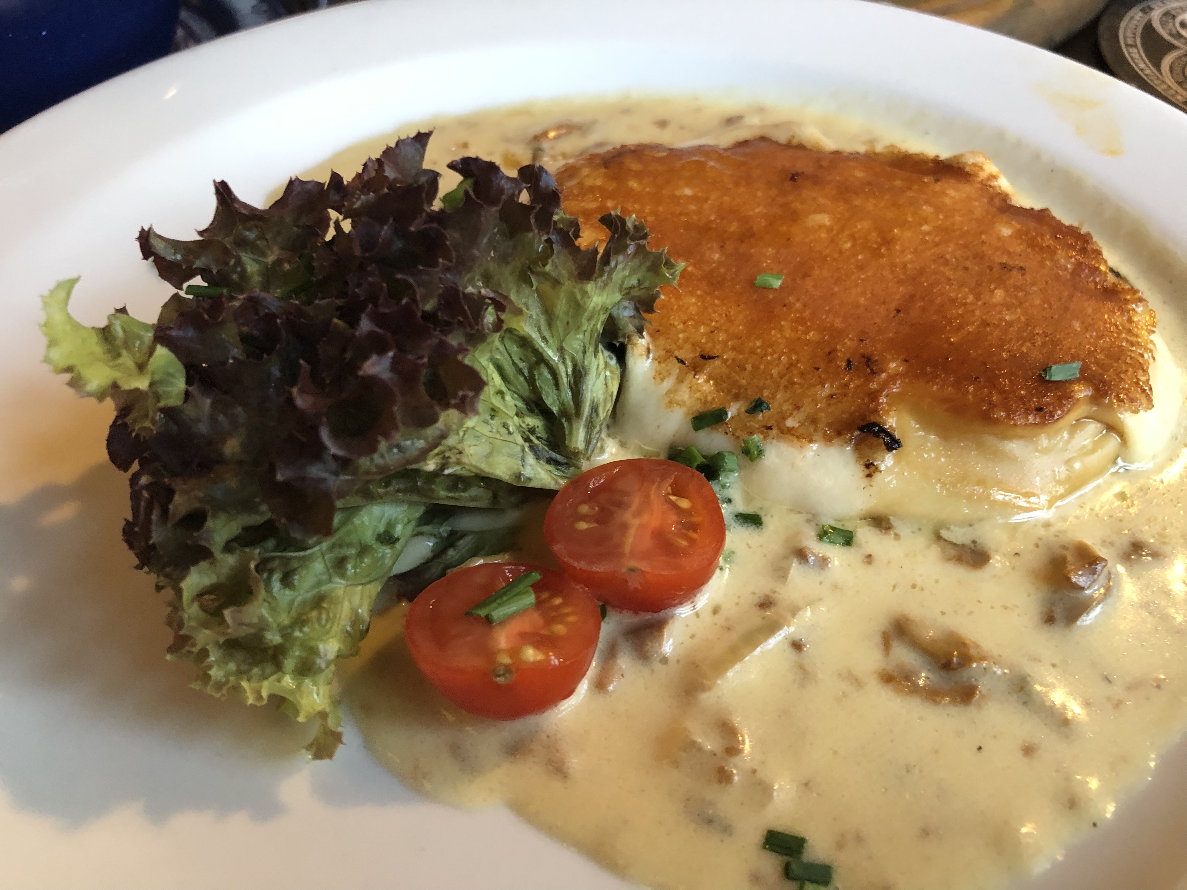 We had searched for typical Slovakian food and enjoyed this pan-fried sheep’s cheese with chanterelle mushrooms, duck with red cabbage, and dumplings with cheese and bacon.